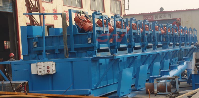 該套系統(tǒng)使用了11臺振動篩,另有3臺除砂清潔器,3臺除泥清潔器,由75KW砂泵給其提供動力!